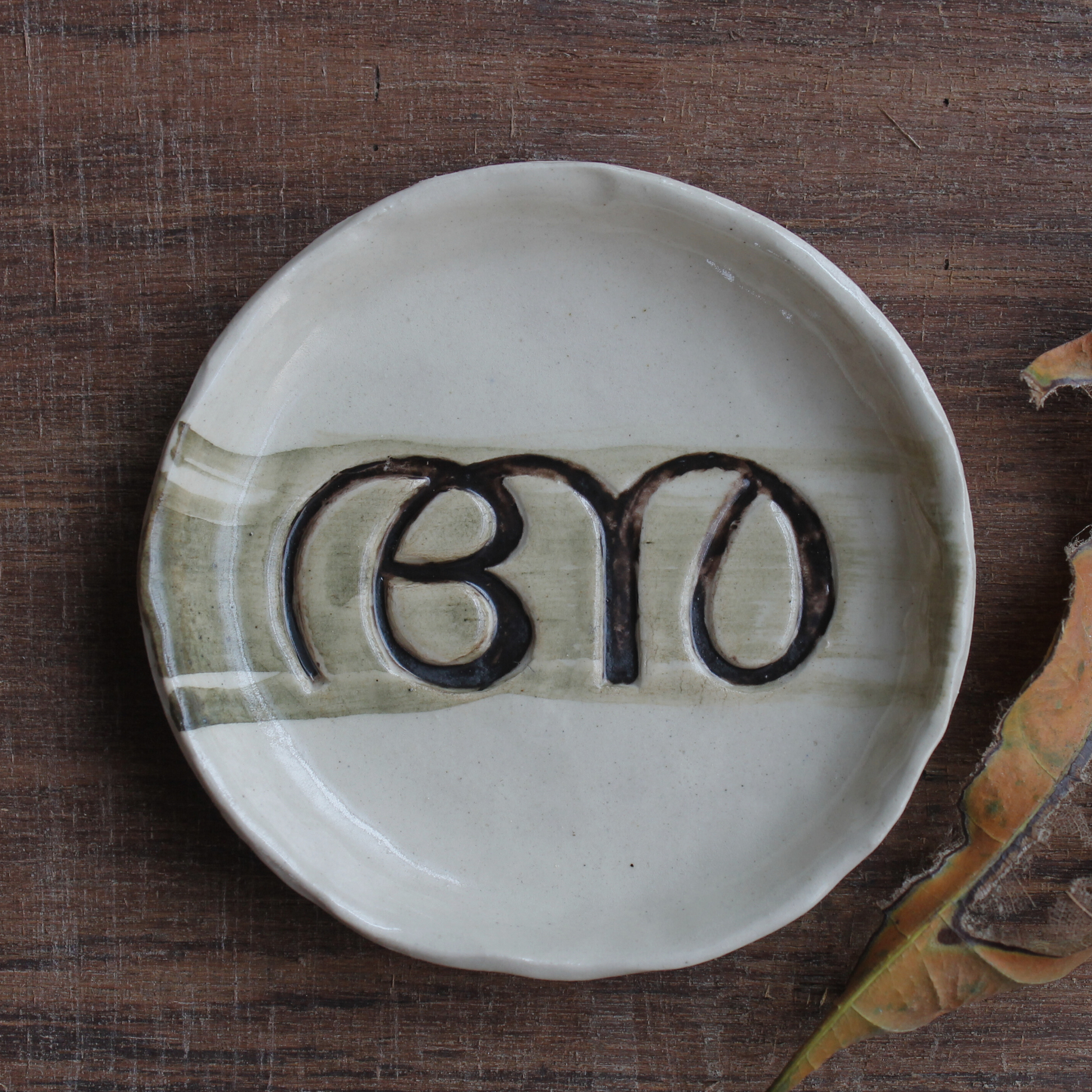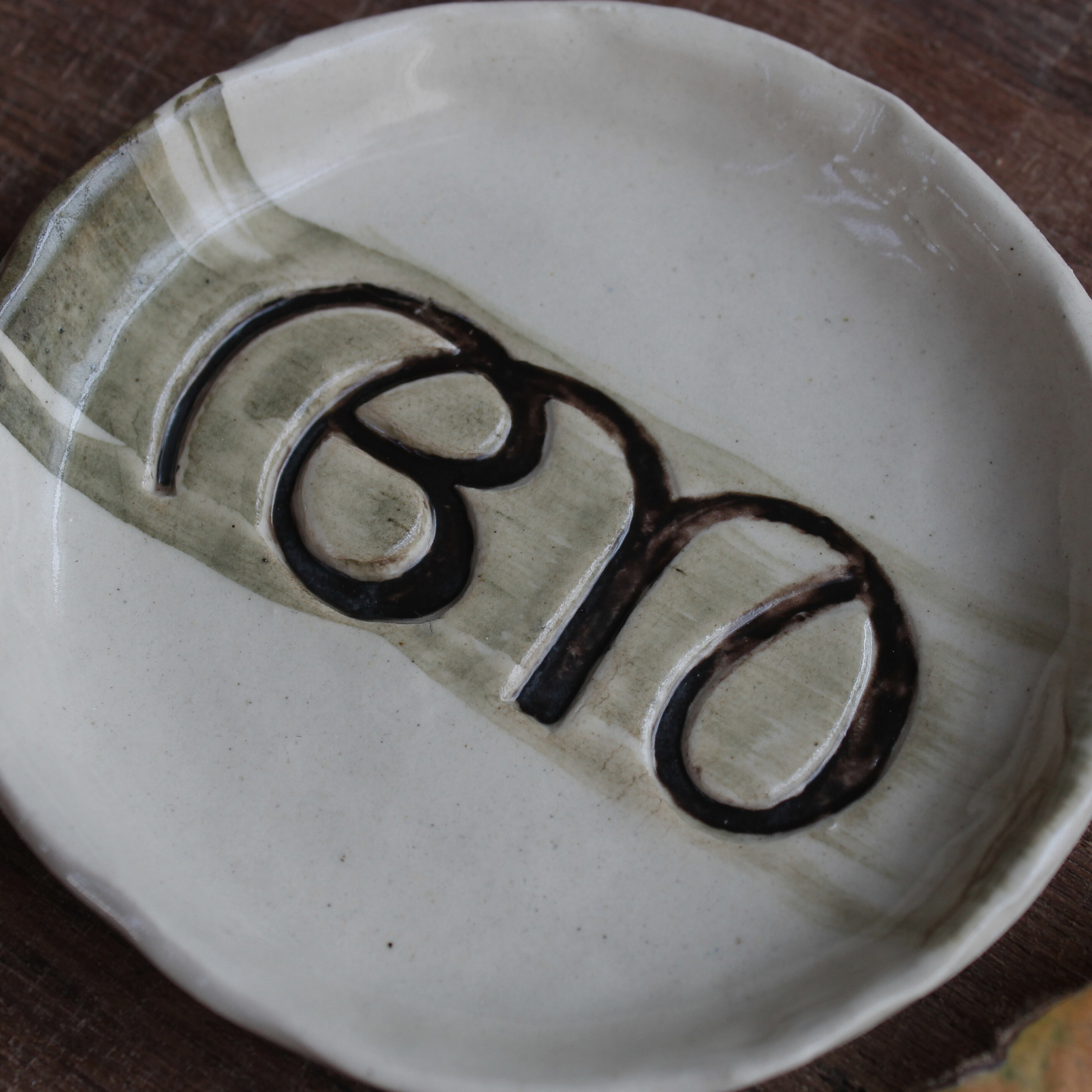 Food-safe glaze (can also be used as a small snack plate). Each piece is unique with slight variations in form, colour, and pattern