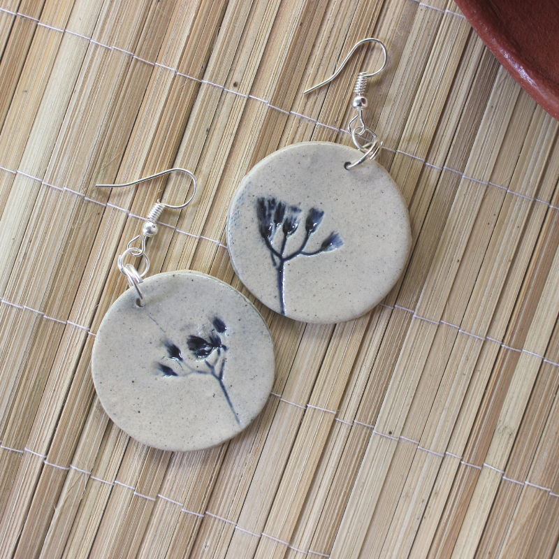 Ceramic earrings with navy blue wild weed